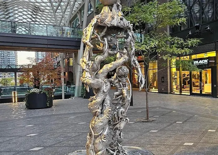 Hunters Landing Bar Grill Hub Restaurant offers guests the chance to dine on contemporary delicacies in a bar, all located 350 meters from Downtown-Bmo Field Stay-Next To Transit-Restaurants-Union apartment. Another option is Roywoods, where they can relish Caribbean dishes, located 300 metres away.